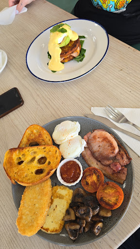 My wife and I were on our way to the local smash room so we decided to go here for breakfast and we were not disappointed. the prices were reasonable, especially for the serving sizes. i got the yard big breakfast and my wife got the smoked salmon stack, we both got decaf lattes on oat milk with vanilla.