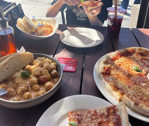The food was okay. Nothing special, and certainly not up to the standard of a good Italian restaurant. For example, the Margherita pizza contains three whole basil leaves, so basically five of the eight slices don't contain the flavour that is essential to this pizza.