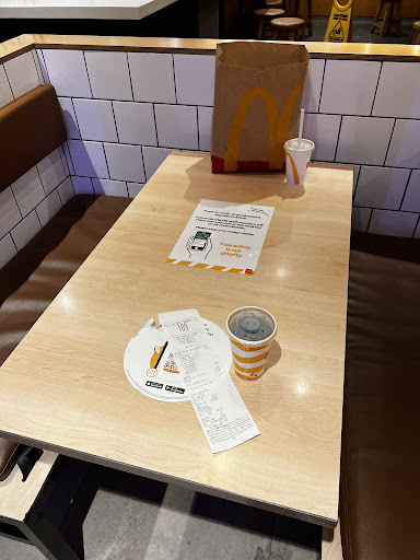 Left drive through, and checked order to realise large fries were cold, stale and only half full and banana bread was ice cold, not warmed up without a serving of butter or any cutlery.