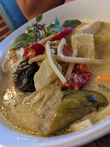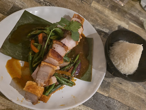 Restaurant can fit up to 8 tables. It's quite empty when we arrive, bt tables are reserved. We ordered at 6:10 p.m. The food is served in about 20 minutes. The rice portion is quite small, but the presentation is nice. I would suggestโฃ ๐๐ก๐๐ข ๐๐๐ฌ๐ข๐ฅ ๐ฌ๐ญ๐ข๐ซ ๐๐ซ๐ข๐๐ โฃ ๐๐ก๐ข๐๐ค๐๐ง ๐ ๐ซ๐๐๐ง ๐๐ฎ๐ซ๐ซ๐ฒ โฃ โฃ ๐๐ป๐๐ก๐ข๐๐ค๐๐ง ๐ซ๐จ๐ฎ๐ฅ๐๐๐ ๐ ๐ซ๐๐๐ง ๐๐ฎ๐ซ๐ซ๐ฒ (๐๐๐ง๐ -๐ค๐๐๐ฐ-๐ฐ๐๐ง-๐๐๐ข) $๐๐โฃ It's a green curry with chicken breast roulade, bamboo shoots, eggplants, and winter melon. I think the green curry tastes good; it's not too strong for me, but my peers think it's a little watery. Chicken roulade, on the other hand, seems a little rougher to me.โฃ โฃ ๐๐ป๐๐ฉ๐ข๐๐ฒ ๐๐ก๐๐ข ๐๐๐ฌ๐ข๐ฅ ๐ฌ๐ญ๐ข๐ซ ๐๐ซ๐ข๐๐ ๐ฐ๐ข๐ญ๐ก ๐๐ข๐ง๐๐๐ ๐๐ง๐ ๐ซ๐จ๐๐ฌ๐ญ ๐ฉ๐จ๐ซ๐ค $๐๐.๐๐โฃ Everything on this plate complements each other perfectly. There are about 7 pieces of roast pork, and it's still crunchy when you bite into it. ๐๐ฎ๐ฌ๐ญ ๐จ๐ซ๐๐๐ซ!โฃ โฃ ๐๐ข๐ง๐๐๐ฉ๐ฉ๐ฅ๐ ๐๐ซ๐ข๐๐ ๐ซ๐ข๐๐ $๐๐.๐๐โฃ ๐ง๐ณ๐ช๐ฆ๐ฅ ๐ณ๐ช๐ค๐ฆ ๐ข๐ค๐ค๐ฐ๐ฎ๐ฑ๐ข๐ฏ๐ช๐ฆ๐ฅ ๐ฃ๐บ ๐ด๐ถ๐ญ๐ต๐ข๐ฏ๐ข๐ด, ๐ค๐ข๐ด๐ฉ๐ฆ๐ธ ๐ฏ๐ถ๐ต๐ด, ๐ฑ๐ฆ๐ข๐ด ๐ข๐ฏ๐ฅ ๐ค๐ข๐ณ๐ณ๐ฐ๐ต๐ด. ๐๐ข๐ณ๐ฏ๐ช๐ด๐ฉ๐ฆ๐ฅ ๐ธ๐ช๐ต๐ฉ ๐ค๐ฉ๐ข๐ณ๐จ๐ณ๐ช๐ญ๐ญ๐ฆ๐ฅ ๐ฑ๐ช๐ฏ๐ฆ๐ข๐ฑ๐ฑ๐ญ๐ฆ ๐ข๐ฏ๐ฅ ๐ค๐ฐ๐ณ๐ช๐ข๐ฏ๐ฅ๐ฆ๐ณ.๐๐ฐ๐ฑ๐ฑ๐ฆ๐ฅ ๐ธ๐ช๐ต๐ฉ ๐ด๐ฑ๐ณ๐ช๐ฏ๐ฌ๐ญ๐ฆ ๐ฐ๐ง ๐ค๐ณ๐ช๐ด๐ฑ๐บ ๐ด๐ฉ๐ข๐ญ๐ญ๐ฐ๐ต๐ด ๐ข๐ฏ๐ฅ ๐ด๐ฑ๐ณ๐ช๐ฏ๐จ ๐ฐ๐ฏ๐ช๐ฐ๐ฏ.โฃ โฃ This isn't the pineapple fried rice I'm looking for, in my opinion. It's more akin to regular fried rice.โฃ โฃ ๐๐ฐ๐๐๐ญ & ๐ฌ๐จ๐ฎ๐ซ ๐ฌ๐ญ๐ข๐ซ-๐๐ซ๐ข๐๐ ๐ซ๐ข๐๐ ๐ง๐จ๐จ๐๐ฅ๐ (๐๐๐ ๐๐ก๐๐ข) $๐๐.๐๐โฃ ๐ณ๐ช๐ค๐ฆ ๐ฏ๐ฐ๐ฐ๐ฅ๐ญ๐ฆ๐ด ๐ธ๐ช๐ต๐ฉ ๐ฃ๐ฆ๐ข๐ฏ ๐ค๐ถ๐ณ๐ฅ, ๐๐ฉ๐ช๐ค๐ฌ๐ฆ๐ฏ & ๐ด๐ฉ๐ณ๐ช๐ฎ๐ฑ๐ด ๐ต๐ฐ๐ฑ๐ฑ๐ฆ๐ฅ ๐ธ๐ช๐ต๐ฉ ๐ง๐ณ๐ฆ๐ด๐ฉ ๐ฃ๐ฆ๐ข๐ฏ๐ด๐ฑ๐ณ๐ฐ๐ถ๐ต๐ด, ๐จ๐ณ๐ข๐ต๐ฆ๐ฅ ๐ค๐ข๐ณ๐ณ๐ฐ๐ต๐ด, ๐ด๐ญ๐ช๐ค๐ฆ ๐ด๐ฑ๐ณ๐ช๐ฏ๐จ ๐ฐ๐ฏ๐ช๐ฐ๐ฏ๐ด, ๐ฉ๐ฐ๐ฎ๐ฆ-๐ณ๐ฐ๐ข๐ด๐ต๐ฆ๐ฅ ๐ค๐ณ๐ถ๐ด๐ฉ๐ฆ๐ฅ ๐ฑ๐ฆ๐ข๐ฏ๐ถ๐ต & ๐จ๐ข๐ณ๐ญ๐ช๐ค ๐ค๐ฉ๐ช๐ท๐ฆ๐ด