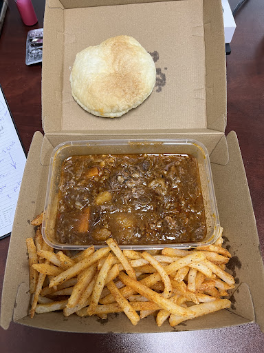 I returned to my office open my only to see soggy fries, a plastic container with what looked more like a beef stew and some sort of crispy pastry.
