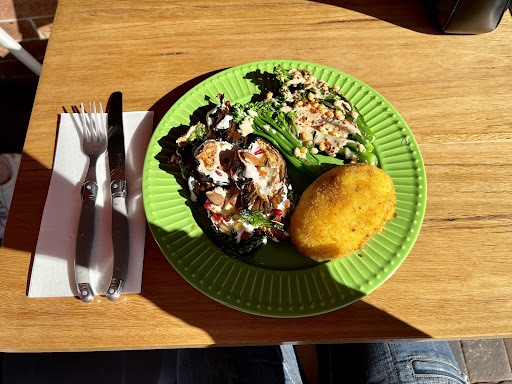 Read moreThis cafe had a v strange vibe. Staff were unfriendly and no-one was smiling. It did not look like a happy kitchen. We got takeaway and were v underwhelmed. The cauliflower cakes which I had high hopes for were v stodgy, quite astringent and tasted as if raw spices had been added to the mix. We barely touched it. The brocolli salad was fine but I would not order it again and the spinach burek tasty but nothing special. I've got 3 ottolenghi cookbooks and this food did not remind me of his cooking at all. V...