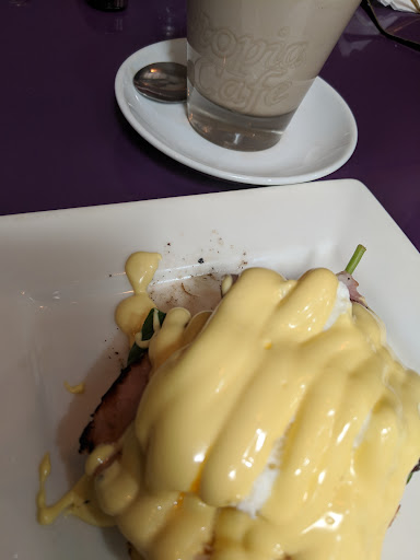 Read moreTravelled out to Kingaroy yesterday for work and looking for a late lunch (2pm) and Utopia was one of the few places open. The staff member was lovely and friendly. I had the forager breakfast sandwich, which was grilled mushroom, haloumi, tomato and kale. I asked for the tomato to be extra grilled and that wasn't an issue. I also ordered the apple crumble. The toasted sandwich was delicious and great serving size, which was terrific value for $7.00. The apple crumble was fantastic and a really large serving, although it was more like a bread and butter pudding in consistency.