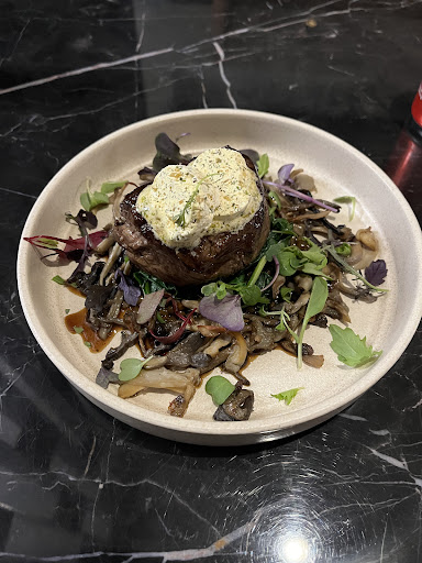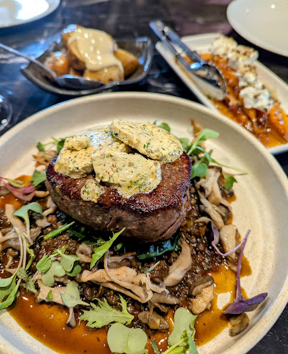 Read moreWonderful food, just outstanding quality. Came here out of convenience, but was blown away. The room is beautiful, the portions are actually quite generous, we could only have some entrees and a main, couldn't fit any room for dessert, so it ends being quite good value. For happy hour, all of the glasses of wine are $9 which is fantastic value. We had the chicken tacos and eye fillet steak which was perfectly cooked. Also had some sides to go alongside. Service was lovely, attentive. The space is quite nice but probably the lighting is quite bright so detracts a little from the otherwise somewhat intimate setting. Perhaps a more lounge type of seating for the bar would be better. The plant wall is spectacular and I saw another couple remark that it...