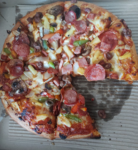 Read moreOrdered two for tuesday had to pick up for that price. Pizzas not ready but hot when we got home. Order surf and turf with extra prawns would hate to think how many prawns normally you would get but for $5 extra probably got 6-7 prawns in total. Steak was thin but had flavour. The other was supreme with chilli flakes and garlic added. Couldn't taste either. The bases traditional were way to thick compared to the toppings which were extremely thin. Capsicum tasted raw not much flavour. Would not order again would perhaps try a thin and crispy base to see if that was better. And first pizza had a traveller attached either a fine long hair or fluff of jumper no big...