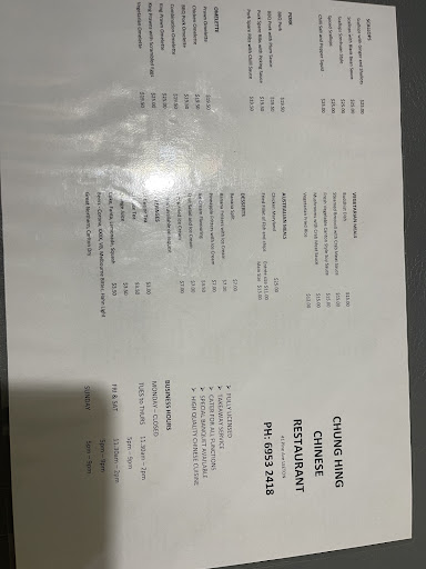 Read moreI've known Henry since he was 15. He's a kind, hard working man, and like his Dad, a great chef who can quickly turn fresh ingredients into a tasty meal. We've eaten at his Dad's restaurant, years ago, where Henry helped, after school, wporked very hard, and learned his craft, and at Henry's Chung Hing in Leeton. Henry's meals were consistently fresh, tasty, not expensive, and generous. The service was always friendly and super helpful. We're very happy to know Henry and his whole family, and proud to call them...