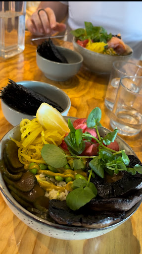 I was drawn to try this place by the almost 'across the board' 5 star reviews. After my experience today, they deserve every star. From the welcome by the waitress, through the superbly poured coffee, to the delicious and expertly plated food, I can only agree. We both had the Yam. One with chicken, one with house cured salmon. My wife's comment, "This is the tastiest lunch I've had for a long time!" was spot on. The house cured salmon is undoubtedly the best I've had, with a distinct gravalax flavour. The Nam bowl contents could border on being a touch on the " too much pickle" had it not been for the splendid whole portobello mushroom and the exquisite rice tuille, which added a tasty crunch. The crunch of the sparingly added popped black rice was a master-stroke.