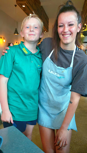 Was hoping for good things from this cafe and bar as the whole shopping centre is relatively new. Noticed a chalk board out the front which read, "Free Beer, Free WI FI". Asked about the free beer and was told it was a joke, to make you take notice of the free WI FI sign, haha, not funny or amusing. Ambience? Polished concrete floors, no atmosphere and very noisy. Ideal for eves dropping on neighbouring tables. The meals, my friend ordered the bruschetta, which she assured me was lovely. I opted for the seafood fettuccini. Just love seafood and pasta. Fettuccini was very disappointing and light on for seafood. Three muscles in the shell and two scallops and about 3 octopus tentacles 3mm dia x 25mm long. No prawns, no fish, no other seafood. For around $22, I expected better. Dressing appeared to be made of oil and butter, with no herbs and only tasted buttery.