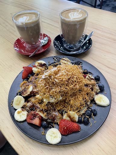 Read moreA mixture of the lovely smells of both coffee and wood greeted us as we walked through the door. We ordered lattes and the upsized fruit croffle for 2. Coffee was delicious and the croffle was one of the best things we have ever eaten. It was a waffle with banana, blueberries and strawberries topped with vanilla ice cream and Norwegian brown cheese. Yes, I said Norwegian brown cheese. We weren’t sure if it would go together well, but thought why not give it a shot 🤤 the cheese is a mixture of goats and cow cheese and the tang was gooooood. Will be dreaming of it tonight I’m sure and will be back for it all another day. The beautiful timber creations are an added bonus, very well made and makes for an interesting wander. Thank you to the...