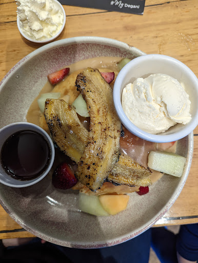 Went up to order brunch, decided on the butterscotch pancakes. As I order she asked "Are you okay with both cream and ice cream?" I asked again as it was hard to hear with the mask. Same response, "Are you okay with both cream and ice cream?" I said yes.