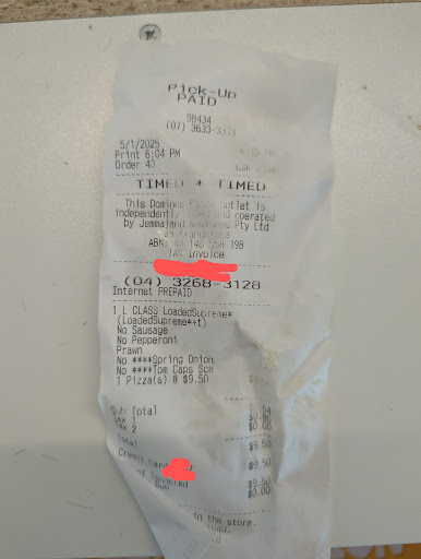 At first, the manager told me it wasn’t their store, even though our records clearly showed it was. I called again, and to their credit, the manager the second time was understanding and offered free pizzas next time, which I appreciated. Still, the experience left a really sour taste. I felt let down and genuinely unsure if I’ll want to order again - and that’s saying a lot from someone who’s always loved pizza.