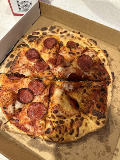 Went and bought a Pizza last night and overall it was of great quality. The staff experience however left quite a bit to be desired. The bloke who served me, i think his name was Kurt, was very prompt and friendly. However over his shoulder i spotted a man staring at me, near the port where the pizzas are made. His head was bent downwards and drool dribbled out of his mouth, forming small viscous puddles on the floor. When Kurt asked this man 'order up' he sprung to action and made my pizza, however his head did not move an inch, and he remained steadfast as he stared at me, his head nearly turned a full 180 degrees. After the pizza was made he slammed it into the over and then dabbed. I stared in disbelief as he started fortnite dancing and speaking... No no, SCREAMING in tongues. At this point his co workers evacuated to the other side of the store just to get away from this madman. When the pizza had cooked the strange man cut it into exactly 666 pieces and handed it to me. There was slobber all over the pizza box, and the man had written in some strange writing on the inside of the box, perhaps hyrogliphics? I thanked him reservedly and tried to walk away but as i grabbed the box he held on at the other end and stared into my eyes. In that moment i could feel my soul being ripped from my body, i entered an endless illumenescent void and could feel my very being destroyed and torn appart before my very eyes. All my memories, my existence, it was being erased. Just as i felt my life force slipping away he opens his mouth; 'REEEEEEEEE', he screamed with a beligerant roar, channeling the rage of 1000 autists. I became grounded once more and ran to the store door, staring back i caught a glimpse of his name badge, i think it was 'Ethin' or 'Athan' or something. Anyway, ever since i have been seeing this mans face wherever i turn. It's driving me mad, 'REEEEEEEEEE' rings in my head whenever other people speak to me, i see his face in my dreams which consequently turn to harrowing nightmares. My life has been crippled, my existence now meaningless, i feel as if there is little point continuing.... The pepperoni to cheese ratio was on...