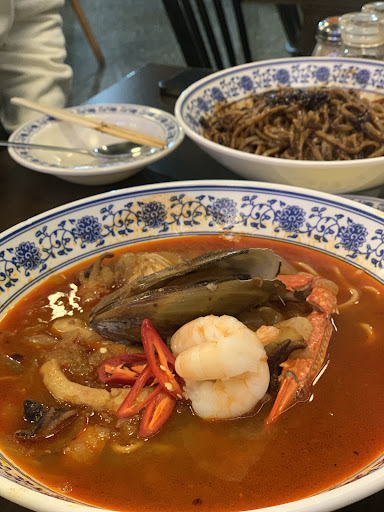 I regret to recommend here to colleagues of mine once before as now I found this shop horrible with an extremely rude female Asian staff who is ignorant and lazy to serve (I called her several times then she saw me but served another table and went back to sit!! There was even worse attitudes for which one of the main staff apologised during the previous visit. He told me that they wanted to fire her but could not find anyone else to replace due to Covid circumstances despite they acknowledged all the complaints about the rude female staff from numerous clients) On our last visit, we were hoping not to see her again (unfortunately the other restaurants which sell black noodles closed early on the day), but she was still there being as rude as usual and stated she was now "owner" and 'a wife of owner' so she didn't want to call owner when I was trying to complain about her service, to the real owner! The owner later came out and said she wasn't even a girl friend! Nevertheless, there wasn't even a bit of difference with the attitude of the owner. What a great rude team! Taste awful but very arrogant with their customers and business. If you still want to visit here? Make sure you put on an extra jacket when it's cold because they refuse to keep doors closed as they have "smell in the restaurant". I assume that their ventilator was broken or etc. They never listen to a single simple request for you! I will never ever...