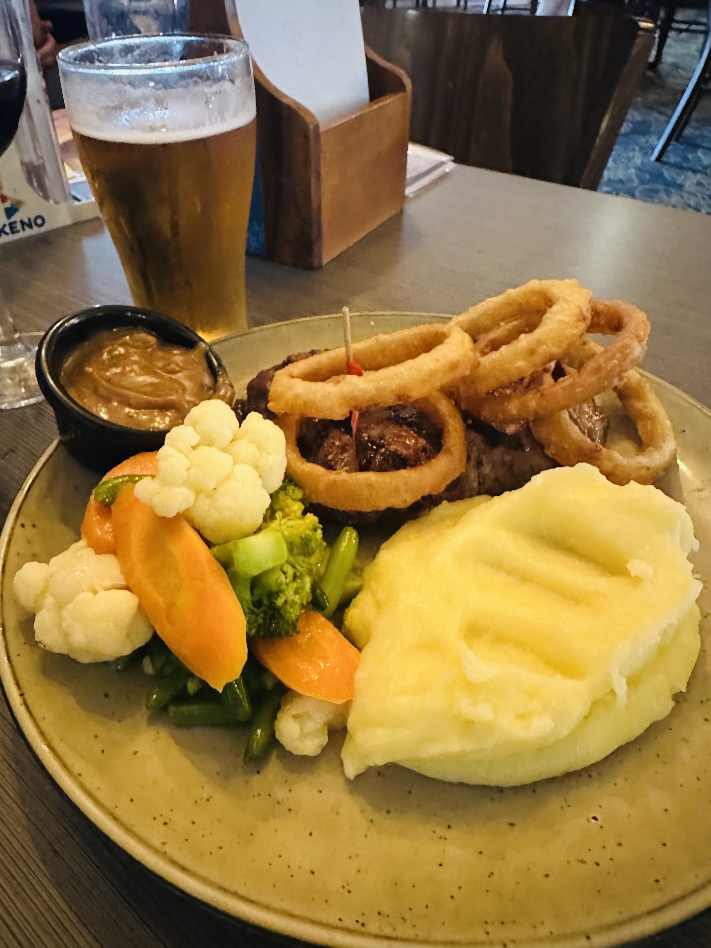 Food from another table was received and after eating a couple chips was identified as wrong. Plate was returned to staff who then tried to bring it back again. We were told it was ordered under the name “old fella”. Eventually the plate was given to the correct customer (minus the chips that were eaten as this wasn’t checked) after being left at our table for about 2-3 minutes when who knows what could have happened to it.