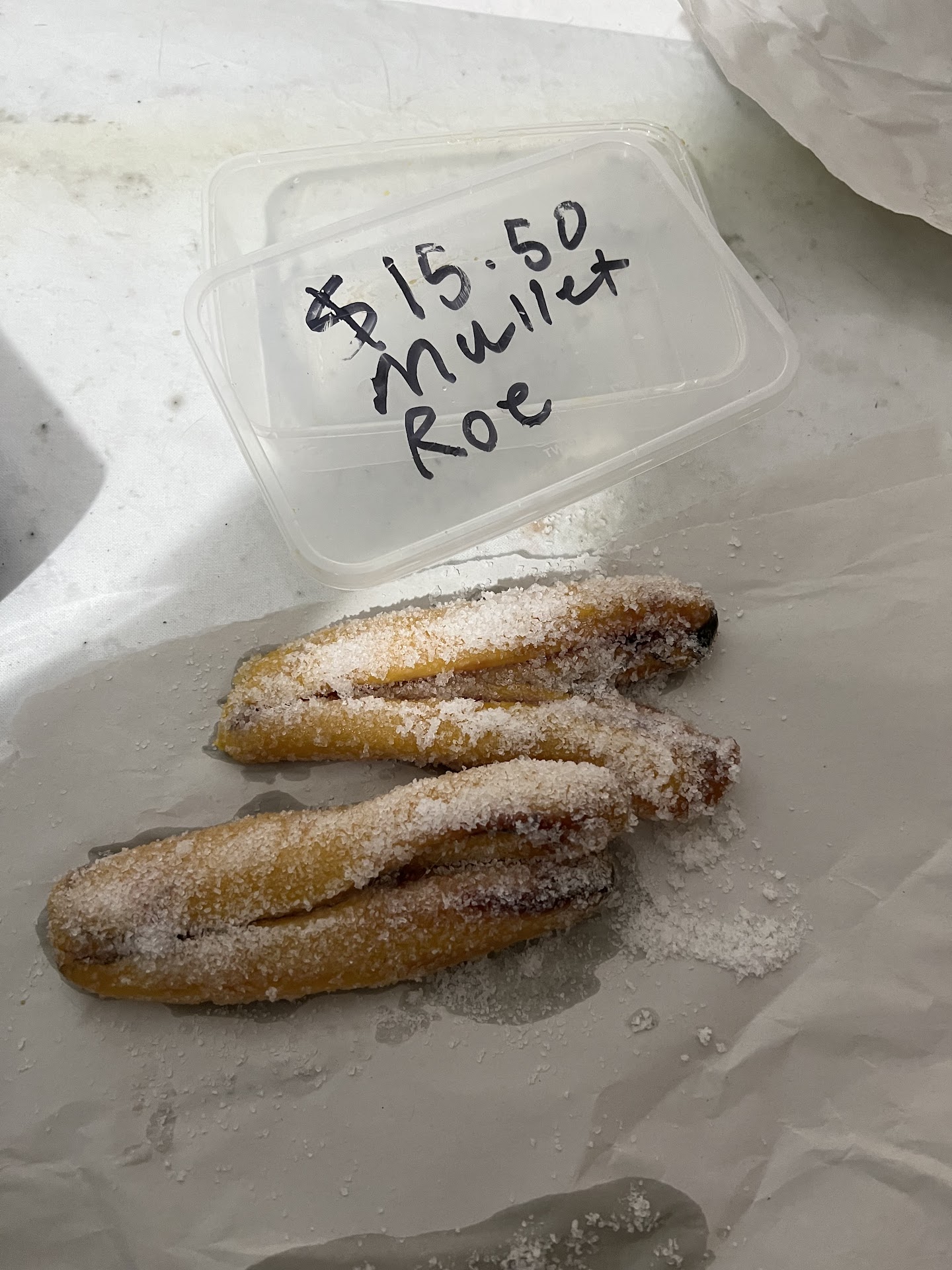 The staff gave us another box of mullet roe which is bit heavier, and asked us pay extra. After we said we don’t wanna pay extra money today, he took several roe out and weighed lighter than what we paid yesterday. We accepted it coz we don’t wanna waste time anymore.
