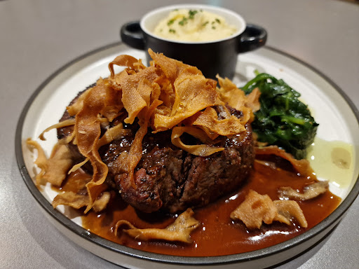 Read moreDoing the Great Ocean Road, I was told to visit Lorne on the way I did, spent more time visiting that I imagined I would need, and realized it would then be better to spend the night there Then came the question of dinner I checked online for options, and The Larder looked like it would be the one And I am so glad I went for it First, location is convenient, at the entrance of Lorne coming from Melbourne. Also ideal for people who stay in the hotel, it's right by Also, it has a garden with lots of tables Once inside, you immediately fall in love with the place, so classy and beautiful. The fireplace adding extra vibes The staff is super welcoming, great job Eli, Jumana, and V And the last but not the least, the food Every item seemed fancy from reading the menu, and they did deliver when serving my food as you can see on my pics I had eye fillet (250g), with creamy mash, port wine jus, sauteed spinach, and parsnip crisps As a dessert, I was intrigued when I read that they had a strawberry & black pepper mille feuille And as a drink, I ordered mango juice Every single item had a twist that surprised me, it was all beautiful, and truly delicious In short: highly...