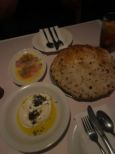 The food itself was average and did not live up to the restaurant’s reputation, aside from the wood-fired bread, which was excellent. The lamb special was overly smoky, the kingfish crudo with orange and fennel was served at room temperature, the roast potatoes were unsalted, and the tiramisu was overwhelmingly strong.
