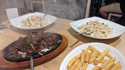 The menu is mostly arranged by protein, followed by a list of sauces in which it can be cooked. From the list of house specialities, the standout is deep fried eggplant ($20). This heaping plate of wickedly good eggplant slices with candied crisp batter and soft, slippery eggplant interiors is taken to the edge of burnt in a toffee-like sauce. By contrast sizzling seafood ($32) is relatively plain, presenting a collection of mussels, locally sourced king prawns, tender squid, white-fleshed fish and seafood extender (the menu calls it crab) in a delicate garlic sauce on a sizzling platter. The same toothsome king prawns come up well in a bright orange sambal ($32) pumped up with extra chilli on request. Combination fried rice ($12/small) is notable for the tasty red-edged BBQ pork slices, clearly...