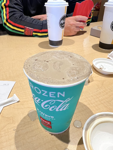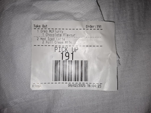 Read moreIf I could leave a zero rating I would. We went inside to order. There were kids riding around inside on their scooters, one weilding a mannequin's arm as he sped around. It was not safe for diners to stand inside and order. There was no manager or even staff member in sight. The floor was filthy with litter and stickiness. The first 3 self serve machines we tried did not respond when we touched them. The 4th one did, and it prompted us that only take away orders were being taken right now. (At this point I also noticed a homeless man sleeping with his head down on a table nearby and did not need any further convincing that I should take-away my order). After ordering, one mcflurry and 2 McCafe iced coffees, we didn't get a receipt printed out from the machine. The machine said our order was 91. We joined the line to collect order. A teenager ordered at the counter after us and received his mcflurry before we got our order. Our number was called out, 191. We guessed that was us. No spoons or straws given. I had to then ask for napkins. We took our cold treats away, as was suggested by the restaurant, and the iced coffee was made with syrup, not from a coffee machine (no surprise since despite huge signage outside there was no McCafe service or staff), and was way too sweet, it wasn't mixed and even when mixed, was undrinkable due to the quantity of disgusting fake coffee flavoured syrup. Wasted $15 at this piss-poor excuse for a fast-food restaurant. McDonalds needs to audit this franchise and close them down...