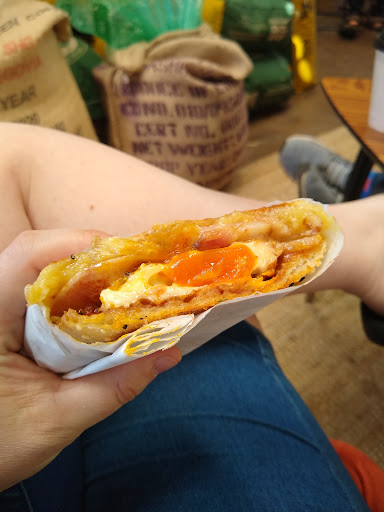 Read moreBreakfast wrap has some sickly sweet bbq sauce in it (or something similar) that was so overwhelming it was inedible. Tumeric Latte they say they put honey in- that's fine by me, but what came out did not taste right. It tasted like pumpkin or something like that. I get tumeric lattes from other places all the time, I've never had one I couldn't drink until now. Got hubby to try both to see if it was my imagination and he was repulsed by then both. Hubby said his coffee was boring and didn't finish it (unusual for him not to finish a coffee). Giving 2 stars because hubby said the Reuben he had was good, otherwise would give 1. No ambience, not enough space inside for all the people waiting for takeaway coffees, just lots of people standing around starring...