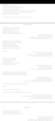 We had the complete tasting menu, and a wine pairing, as well as a Miki's pairing to go along with our food.