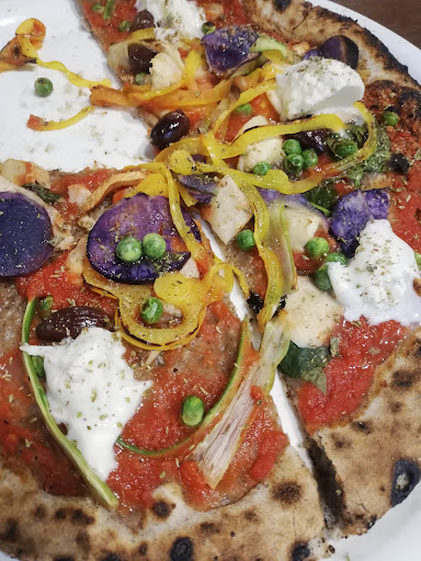 Upon ordering we asked what vegetables were on the pizza and the waiter said, pumpkin, capsicum, mushroom, artichoke which sounded like a good combination. Fast forward to the pizza. We were given what looked like vegetable scraps that were meant for the compost bin were dumped onto our pizza. The pizza comprised of zucchini as thin as dental floss, transparently thin capsicum, wafer thin purple potato slices and PEAS. WHO PUTS PEAS ON PIZZA?!?! and the waiter never mentioned peas. We were completely baffled by this. There was also no pumpkin. Upon questioning the pumpkin they said they would grill us some pumpkin to put on our pizza, by that stage we were completely put off by everything especially the peas situation.