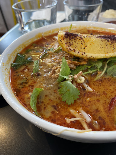 Perfect portioning of noodles to soup and ingredients - brilliant choice of greens uncommon in the traditional laksa (think mint, tomatoes, zucchini, coriander), stuffed fresh tofu, tofu slices, roast pork slices, yellow noodles and beansprouts, all in a surprisingly light yet full-bodied seafood-based broth that packed a spicy punch. Topped with a surprising wedge of spiced lemon, the citrus and mint kept the mix of flavours dancing on the tongue long after my bowl was empty.