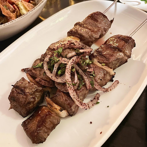 Definitely still book before you go. It packed on a weekday! ORDERED 2024: 🦕 Mixed dips: combination of labnee (home-made naturally thickened yogurt), hummous (Chickpeas blended with tahini, garlic and lemon juice) and baba gannouj (smoked eggplant blended with tahini, garlic and lemon juice) ($20.00) 🥔 Lebanese Potatoes/Batata Harra: Potatoes fried with garlic, coriander, chilli and salt ($15.00) 🥗 Fattoush: A green salad with radish, tomato, cucumber, capsicum and Lebanese fried bread ($18.00) 🍢 Lahem Mishwee: Two skewers of lamb fillets, marinated and grilled, served with tabouleh ($32.00) 🏺 Jug of limonda: Home-made lemonade with rose water ($14.00)