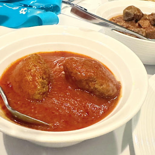 The food was poor quality and without taste. The rice was good, but the curry was not worth the price.