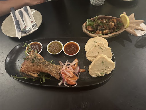We ordered a fair few dishes. My favourite was the black eye bean stew and the African beef stew casserole. The depth of flavour in the bean stew was incredible. There was a creamy texture to the beans, followed by warming spices all wrapped up in a perfectly seasoned sauce. Combining it with the plantains served alongside the beans was heavenly. It added an extra smooth caramelised texture to an already great dish. The Beef Stew was rich and tangy with tomato forward flavours. Dipping Fufu in it was an excellent way to soak up the flavour to balance it all out. The meat itself was cooked well. The fried fish with bread was unlike anything I had tasted before. I felt the fish was perhaps too salt forward for my taste. The sauces it came with (three dips) were unique in their own way and very tasty.