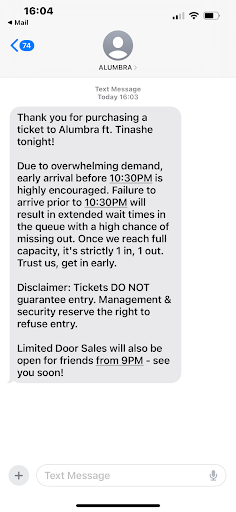 I completely understand the need for security to carry out their duties, but it is never appropriate to treat or manage any individual in a way that leaves them feeling unwelcome. It doesn’t hurt to be kind, and small acts of courtesy can go a long way in maintaining the friendly, vibrant atmosphere that makes Alumbra so special. I truly hope the vibe improves in the coming weeks so everyone can continue to enjoy the great experiences the venue...