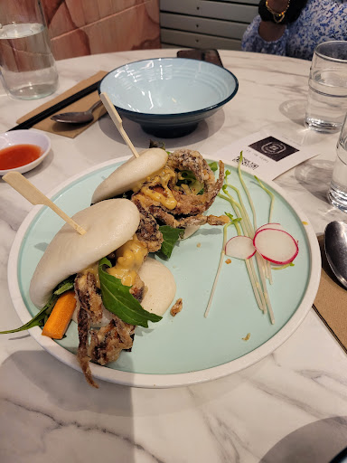 Read moreIf you are after absolutely westernised Asian food, this is the place to go. Honestly a disgrace to what Asian cuisine should be. My friend was a vegetarian and we asked just for the bao with a piece of tofu instead of the crab or pork. The servers had to be explained to a couple of times and the manager refused. He said it would confused the kitchen. Given this restaurant wants to be inclusive of diets and has its own 'gluten free' menu, I dont think its that hard to just replace a piece of meat with tofu for one order. So we decided to just deconstruct the bao at the table and add it in ourselves. We ordered the soft shell crab baos, vegetarian spring rolls and mapo tofu. Can you believe the mapo tofu is one of their only 2 tofu dishes available? Anyway we got the springrolls which only had 3 on the dish. These were good but surprised to get 3. Definitely need to add quantity on the menu. The biggest shock was the baos. When you think about the flavours of Asian cuisine, whole grain mustard isn't the first thing that comes to mind but unfortunately here its the only flavour. The soft shell crab bao consisted of a raw stick of carrot, cucumber, a couple of piece of salad, the crab and mustard. They decided to flavour this dish with so much potential with mustard. The presence of the carrot was also kind of ridiculous and not thought through at all. I was so embarrassed to have been served this dish. The mapo tofu was fine and nothing fancy or stand outish about it. To make matters worse after this food experience, there was a 10% surcharge for Sundays and a card surcharge as well. May look aesthetic but some of the worst food ever....
