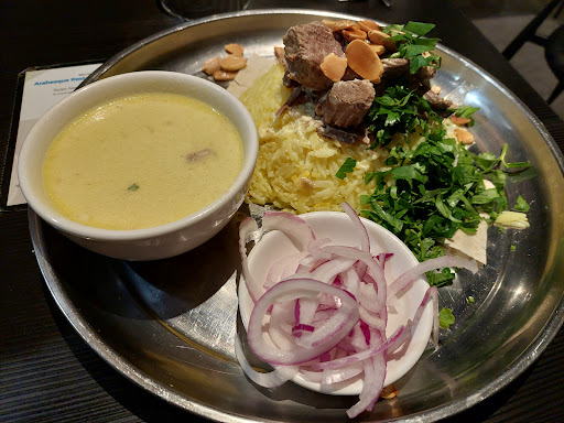 Dinner @ArabesqueMelbourne which is a Jordanian restaurant so why not try their national dish, Mansaf: slow cooked lamb or chicken in jameed sauce over saaj and rice dressed with fried split almonds, parsley with sides soaked onion and jameed sauce.