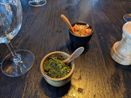 The restaurant has a very nice facade with the big bold writing and is situated on a corner with lovely views of the outside area where you can watch the world passing by. We asked for a table against the room divider in the window side but were ignored and given a table basically within 900mm of the kitchen serving counter and secondary staff work table. The comfortable chair on the one side of the table made up for sitting basically in the bowls of the working area. Our waiter was pleasant and recommended the $95 set menu but we went with our own choices. Starter (suppose to be large and shareable) Tabla De Curados at $26 which was perhaps 5 thin slices of cured meat and a tiny amount of pickles foods and 4 tiny little flatbread triangles. The meat was nicely cured and flavoursome and although underwhelming we thought as a starter we were off to a good start. The wine at $109 a Malbec was flat on the pallet with earthy notes but no fruitiness whatsoever present. It was as if the wine saw to much heat in transport at some point. Who knows. A Yalumba Y series at $16 would have been a better choice. We were shocked by the bland presentation of the main meals. Yhe broccolini was presented well but the rest was served as if by a teenager with no cooking experience. Meat in a bowl - just meat and a bowl. At least the potatoes in a bowl had some cream as a bit of garnish. But still looked like it is was from the RSL. The taste was the biggest suprise. The Conchillo $43 was mostly fat but tasted great with the meat being tender and tasty. Enough for a starter but not a small main. The Tira de Asado $43 was terrible. Chewy overcooked and with enough salt to cure a whole bison. It was dead. It was deadly well done. Seriously a forequarter chop done on a 2BTU Bunnings BBQ with Maggie Beer spice from Woolies or MSG from Uncle Roger would have been better. The Brocollini although presented well was served on a cold plate and was cold so spoiled the potential flavours. The Brocollini tasted fine and was al dente as expected. The potatoes however were horrible little randomly rough cut as you would if you had no shape in mind. The flavour would have been great if it wasn't for the pot of salt that was dumped into it. We told the waiter it was basically not edible since we barely touched it. We ate most of the pork 1 piece each of the beef. A spoonful of the potatoes and half the Brocollini. It didn't seem to register. He explained all our concerns away by saying yes that is the way the Argentinians/Spanish do things. Well in brief this is not for us then. 😕 Good luck guys. I will take $267 and tip to find better value...