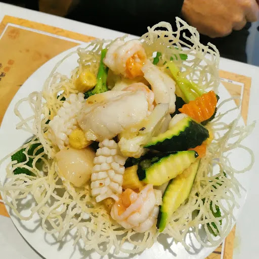 We ordered prawn cocktails to start with, which were really tasty. Hubby ordered birds nest seafood combination and I ordered the sizzling Mongolian beef and we shared a special fried rice.
