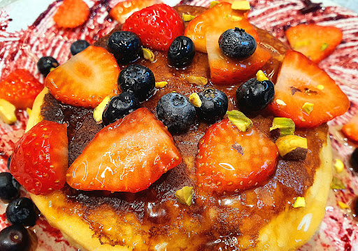 My surprise began with the specials board - in this case ordering the Brioche Benedict. A wonderful menagerie of colour with asparagus, tomato, avocado and nuts carefully placed around a rather large brioche bun! Not just a boring set of eggs with a splash of mayonnaise! As you can see from the photos, with two poached eggs (I ordered four) this meal would easily fill any hungry bear! Next up was the 'Over the Moon Pancakes' - and you could say they really did take me as far as the moon! What colour! Swirls of berry coulis around the plate supported by berries galore, nuts and a splash of maple syrup with two hefty & soft pancakes in the middle. I opted out on the fairy floss and Oreo's and it was perfect! The creativity in these meals has to be seen! And has the coffee brew changed? It has also improved! All in all a wonderful experience here at Astroluxe - one of my local favourites and surely many others too. No hesitation to give 5/5 for service, creativity, serving...