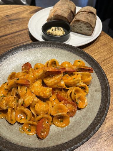 The Sydney Rock Oysters came with a granita which was too vinegar-y for me. The Orecchiette Prawn Pasta was very fishy, but had a nice, almost vodka pasta style sauce. Would’ve been great with some more spice! Our standout of the was the Croquettes and their Sourdough with Miso Butter was also crunchy and delicious. ⭐️