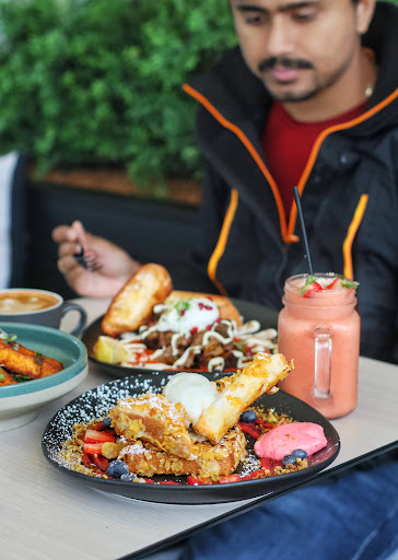 French toast, which is so out of the world, tasty, has so many layers to make it impossibly irresistible, served with brioche toast coated in cornflakes, rhubarb purée, boysenberry mascarpone, pistachio crumb and vanilla icecream. Strongly recommended.