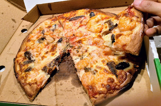 Read moreReally nice pizza, loaded with fresh toppings. The cheese was nice, the ham was great, the prawns were OK but were a little dry. The veggies seemed fresh. The pizza base was lovely, could taste a touch of garlic. I found the base, though tasty, a little too thick for my personal liking. The large I ordered was a little smaller than an average large from other family pizza joints. My mother claimed it was the best pizza she has had. I would say its better than most. Service was...