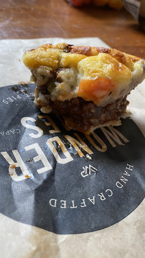 Read morePurchased , sausage roll and a family beef and red wine pie for dinner. The pastry is 1st class, rarely had better. As was the sausage roll, a joy to eat slowly, Savouring every bite. The pie less good. Too wet, flavour quite ok if it were just sold a beef pie, just no depth of the red wine. Being too wet not a total disaster if eating on a plate with a knife and fork and some veg.Did buy a 'hand held' pie a year or 2 ago At their other outlets it was also too wet and did fall apart. Couldn't eat these standing up or at the footy. Heaven would be buying their pastry and filling...