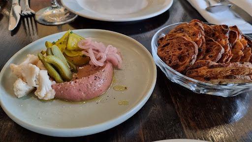 Read moreOur family of 4 visited for a birthday dinner early Saturday evening. Nice, buzzy but cosy French bistro with an unexpectedly generous amount of space for restaurants in Yarraville. A couple of house-mixed soft drinks and a delicious spicy margarita whet our appetites nicely. We typically order to share and were able to do so easily here despite the place serving to the higher price end of the market. A small Cobb Lane baguette was a hit served with whipped butter, and just what was needed to wipe up the citrusy juices of the scallop ceviche served with cornchips on the specials board that night. A pair of grilled QLD tiger prawns were smokey and nicely charred but expensive at $14 per prawn. Also on special was white asparagus which was cooked just on point served with a beurre blanc but the dish lacked needed acidity. The scattering of croutons didn't really add much to the dish. We had the pork chop perfectly cooked sous vide and finished on the pan with a buttery jus. Our other main was more carne, an $70 aged 500g steak served perfectly medium rare on the bone. A tad heavy handed on the salt. An accompanying dressed leaf salad of iceberg lettuce and slivered cucumber cut through the richness. Kids demolished the creme brulee and their scoop of ice cream to finish. Service was attentive and perfectly timed throughout. Overall a great meal although on the pricey side relative to the experience. A local option for us to visit on...