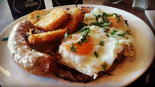Read moreWorst eggs Benedict I’ve had in Melbourne, really struggled to find something good about this place. My eggs weren’t over cooked? That’s it, everything else was bad from the moment we walked in. Told to sit anywhere we wanted we chose a table that suited us, unfortunately it still had dirty dishes all over it. After waiting for 15 mins without anyone even looking at us let alone clearing the table or giving us menus we went up and got our own menus from the counter. We then moved tables to a larger one that didn’t have any dirty dishes on it. About 10 mins later I watched staff take away the dishes but leave behind the glasses that had clearly been used and set up the table with these for the next unsuspecting customers. Lovely. When we finally got our food, my eggs were served on top of a dry burger bun alongside store bought frozen hash browns, low quality bacon and hollandaise sauce that had split leaving a clotted oily mess on my plate, just emphasising the lack of any cooking skills. The whole meal tasted like vinegar and was borderline inedible. The coffee was ok. We were never asked about our meal and as it had taken so long were in a rush to leave so never had the chance to mention...
