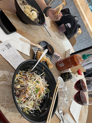 Asked about the number of pieces of spring roll and I didn't want it but the guy just keyed in and after there's a promotion going on that say everything goes better with wine and purchase of wine should be $10 dollars and I was charged $13. When I approached him he told me l have to mention to him when I place an order because that's the deal. But I told him he work here he should know what's the promotion going on and I don't have to tell him I'm going for the promotion that is actually ongoing. Pretty bad service and I was wondering why is it so bad expensive and only realise I was over charged after l ask for a receipt. I have never had a bad service in Melbourne for my whole 2 weeks trip and this is the worst experience I have before leaving here and it is actually here in the airport. I’m also working in the food industry so I know how hard it is sometimes but honestly why are we given this kind of service paying 75$?