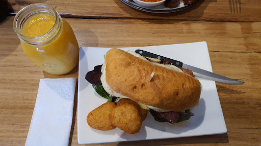 Read moreThis place was highly rated by family as a great place to eat, especially for the bacon and egg rolls. It must have been a bad day or the normal staff had a day off. After a confusing ordering process where a bacon and egg roll is quite different to a bacon and egg burger, and asking for a large latte in a takeaway cup (so you can take it with you after youve eaten) seemed unusual, we went outside to our tables. I say tables because the first small table was very loose and rickety, being obvious your coffee would spill. So we moved tables to find the next table was just as unstable. Third table, that didnt match the others, had a solid top but needed something under a leg to stop it rocking. A quick investigation showed that the tightening of a few screws and a nut would have resolved the see-saw tables.