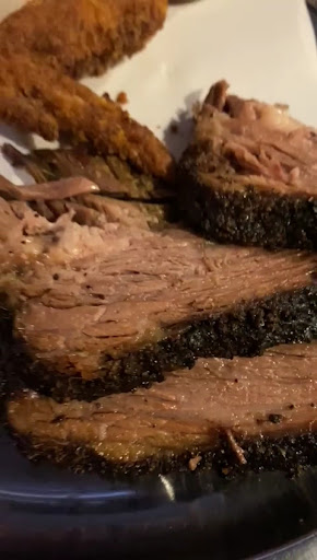The brisket was a bit dry. It happens with cuts that don’t have the fat integrated with the protein fibres. Personally we would recommend the burnt ends, but brisket can be amazing too depending on the cut of meat available on the day. The rub definitely made the brisket taste better. Great flavour and crunch on the...