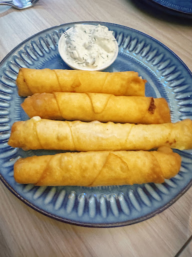 Sigara Börek – Crispy on the outside, warm and cheesy inside, paired with a dipping sauce. Light, crunchy, and super satisfying.