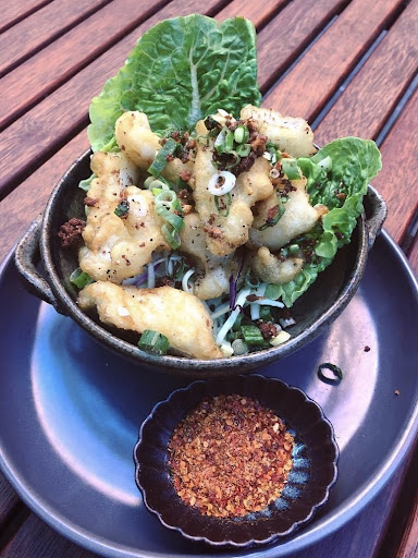 We started with a Sichuan blush cocktail which had a traditional liquor base with something like 50% alcohol. The waiter referred to as ‘Chinese vodka’ and it made for quite a delicious drink! Being a dumpling house we knew we had to try some dumplings. I chose the chitalian and the chicky prawn and took the waiters recommendation on which should be friend or boiled. The chicky prawn (boiled) had beautiful whole prawns inside and the chitalian was a bit of a take on Chinese Italian fusion with the addition of fennel. Something quite different and very tasty. The waiter explained to us that while they do feature more commercialised Chinese food to cater to the masses they also want to showcase their culture with some really authentic Chinese dishes. My favourite was actually the gorgeously silky tofu. I am not generally a tofu fan as I usually find it quite bland but this one packed a serious punch and presented just beautifully. Definitely keep the water on stand by for the ribs too! Next up duck spring rolls and salt and pepper calamari. My partner was loving the spring rolls and kept those to himself while I devoured the calamari. It was sensationally tender and insanely flavoursome with the most delicate of batters. I could have eaten buckets of it. By this stage we were already full but then out came the large plates. The eggplant was recommended and I’m glad it was for it was somehow perfectly crispy on the outside while managing to be super smooth on the inside and covered in a deliciously well balanced sauce. Luckily we’d had the foresight to ask for a smaller serve of Chinese broccoli as that arrived with both the honey chicken and the Mongolian beef. The Mongolian beef was sizzling and topped with a yummy sweet soy which was a bit of a respite from the spicier early dishes. The honey chicken was presented and composed differently to what the typical perception of this dish is. Its strips of chicken with black honey sauce served with a side of lettuce and avocado and a whipped cream dipping sauce. I quite enjoyed this experience of compiling all the elements together and I appreciated the uniqueness of it too. Great location right by a tram stop and lovely interiors and supreme attention to detail right down to the pretty plates created a wonderful atmosphere. Definitely one to try the next time you’re craving Chinese, and don’t forget they offer so much more...