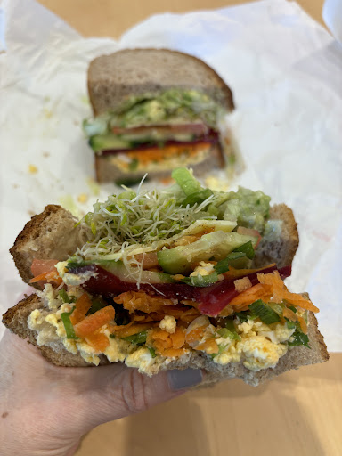 Typically picking up a freshly made sandwich, the light rye bread is soft and fluffy with just enough crunch in the crust to delight. All the fillings are fresh and plentiful...including fresh avacado (not the pre-mushed stuff from a bottle).