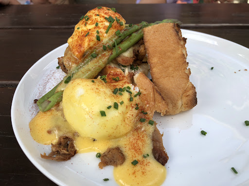 Food: I opted for the pulled pork benedict. I loved everything about this dish. The eggs were poached to perfection, the potato rosti were crisp and delicious and the beetroot hollandaise just balanced the dish nicely. I'd never had pulled pork as part of a breakfast before, and it complemented the eggs beautifully. I was actually surprised how much pork I got. It was soft and just fell apart in my mouth. It's also plated beautifully. Coffee is delicious too.