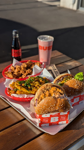 Featured in video Busy double ($16.5) Busy aussie ($16.5) Loaded fries cheese and bacon ($9.5) Biscoff shake ($9.5) Strawberry shake ($7.5)